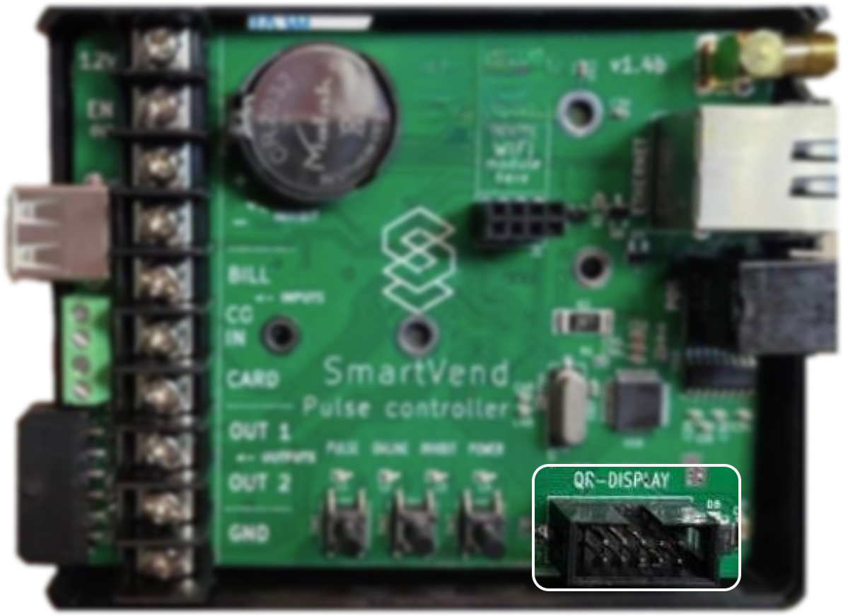 1. Insert the connector into the `QR-DISPLAY (IDC-10)` connector on the controller
