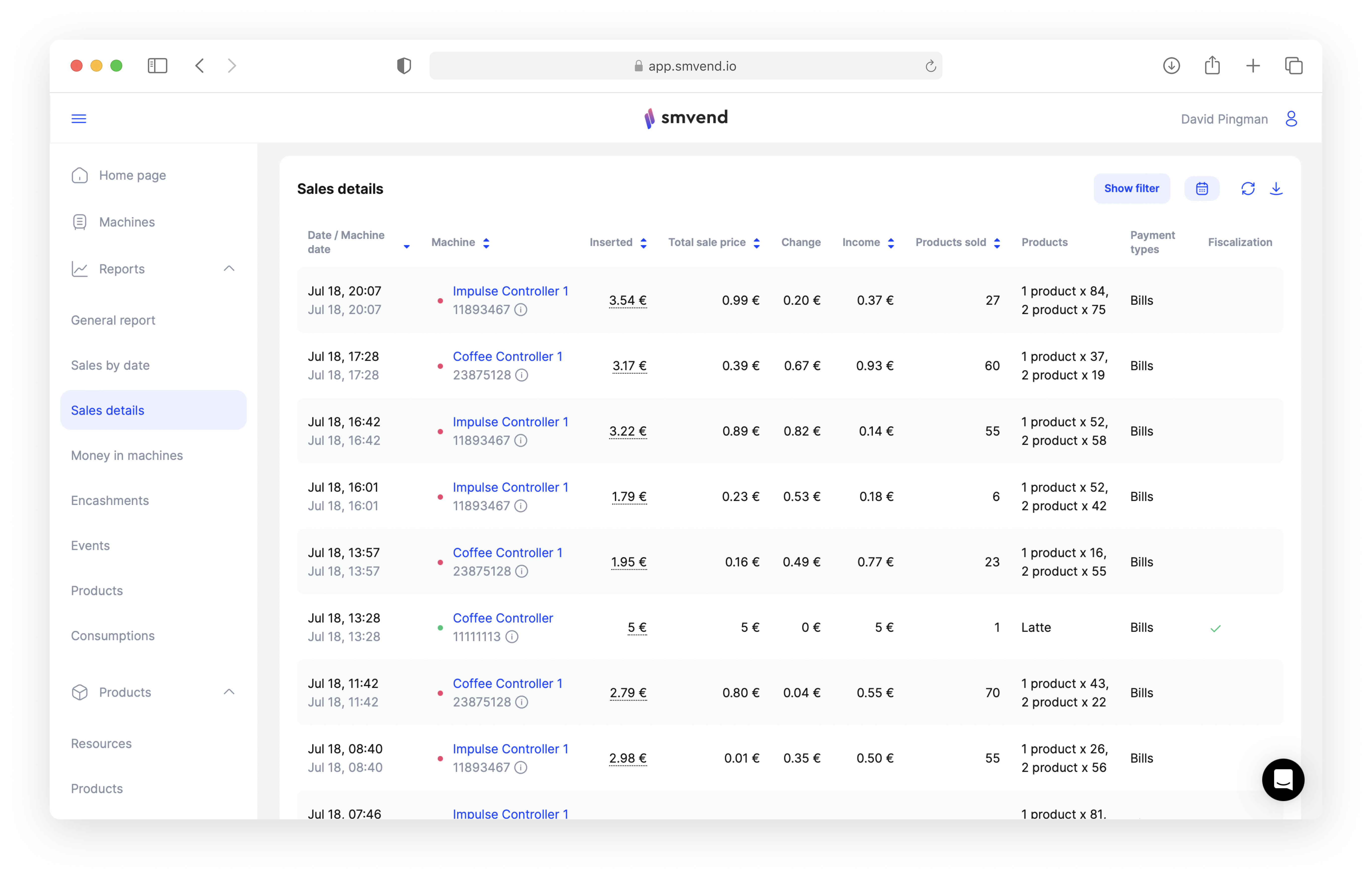 This report is focused on the particular details of each sale that happened on a certain day within a specific machine. Now you can see how much money was inserted into a specific machine, including all payment types.